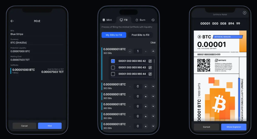 Effortless cryptocurrency transactions — mint, fill, send, and receive SoftNotes in seconds.
